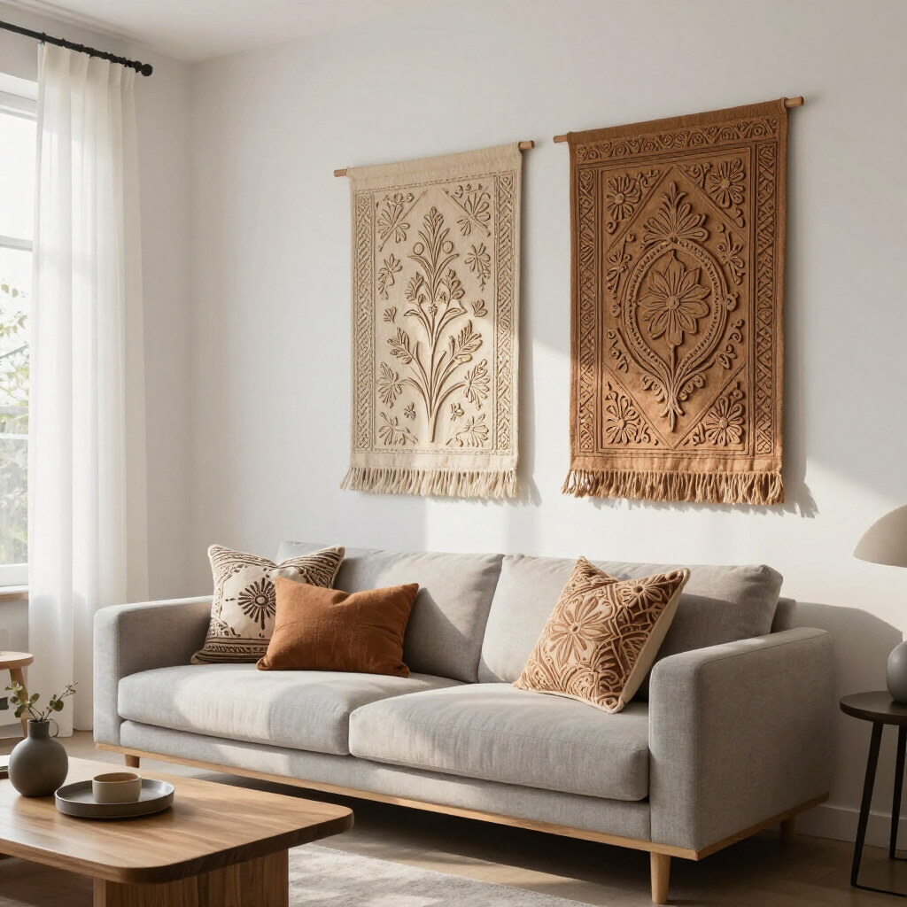 Each piece is meticulously hand-carved, showcasing unique patterns that celebrate the beauty of imperfection. Our textiles add a touch of artistry to your home.